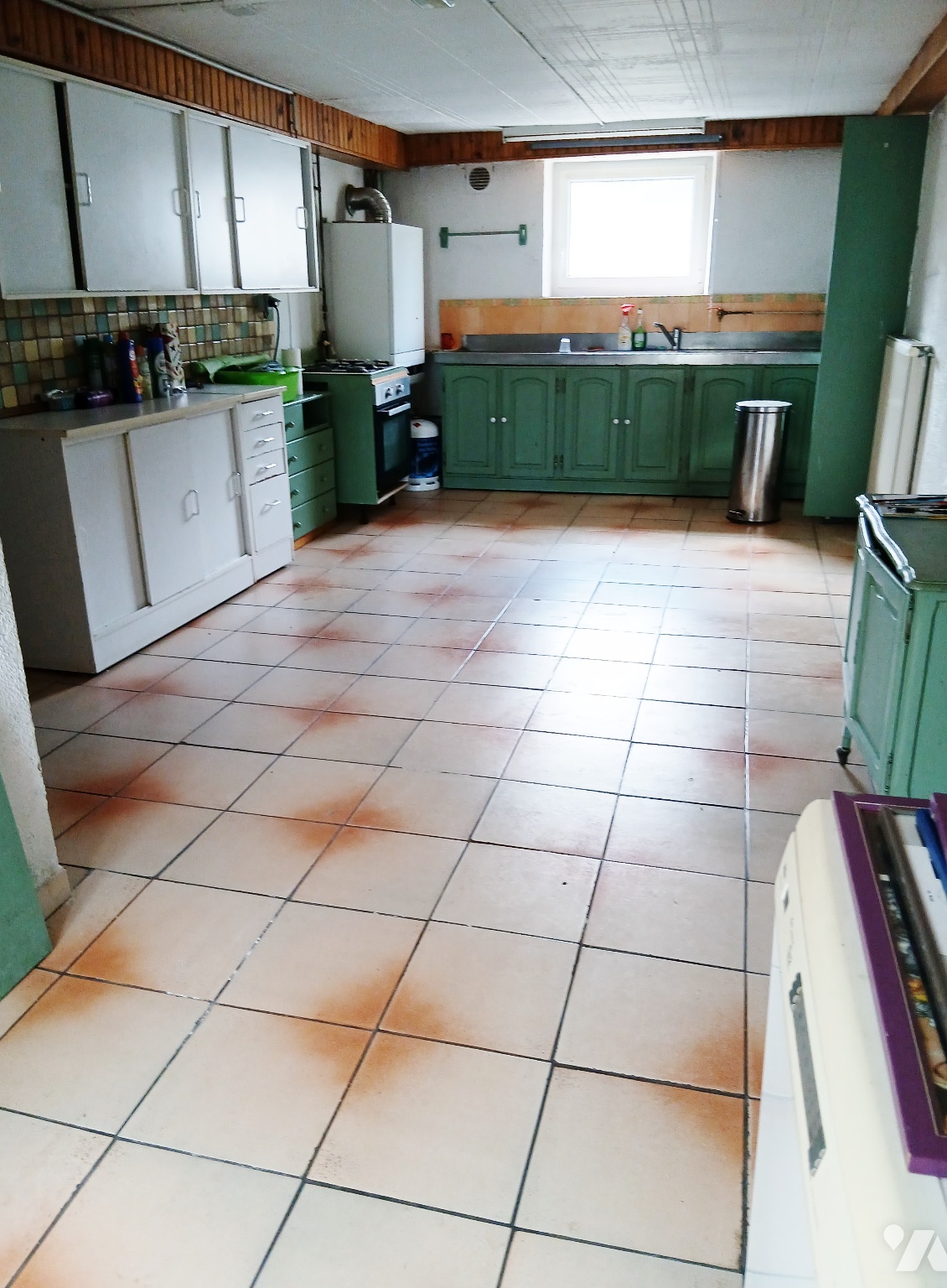 Au rez de jardin : un garage, une grande pièce/ cuisine d'été (24m²), une véranda (20m²), une salle de bain, un wc, un cellier. Porte et fenêtre double vitrage.