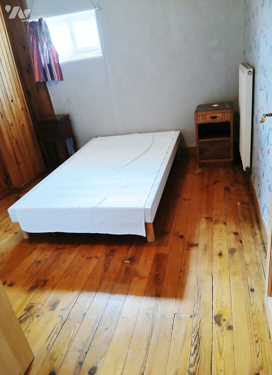 Au 2e niveau : 3 chambres avec de beaux parquets (15, 14 et 10m²), wc, salle eau, penderies. Vitrage simple.